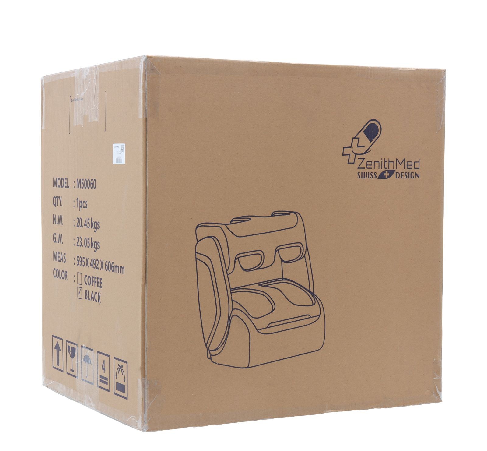 مشخصات فوت ماساژ پا زنیت مد مدل M50060: دارای 2 برنامه اتوماتیک ساق پا و کف پا و یک برنامه میکس برای هر دو بخش قابلیت تنظیم ارتفاع ماساژ از ساق تا زانو دارای تنظیم قدرت در 3 حالت دارای 2 برنامه دستی جداگانه قابلیت ماساژ جلوی پا و پشت پا هنگام جابجایی بخش ساق دارای 5 برنامه اتوماتیک و دستی برای جلو پا تحت لیسانس سوئیس یک سال گارانتی