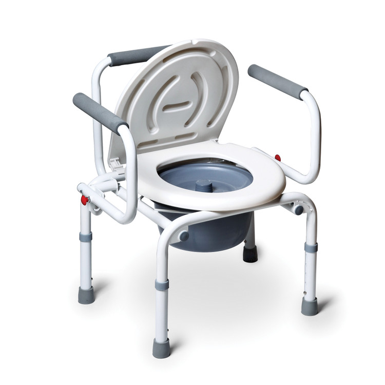 - صندلی PP toilet سفید رنگ با دسته های تاشوی راحتی PE