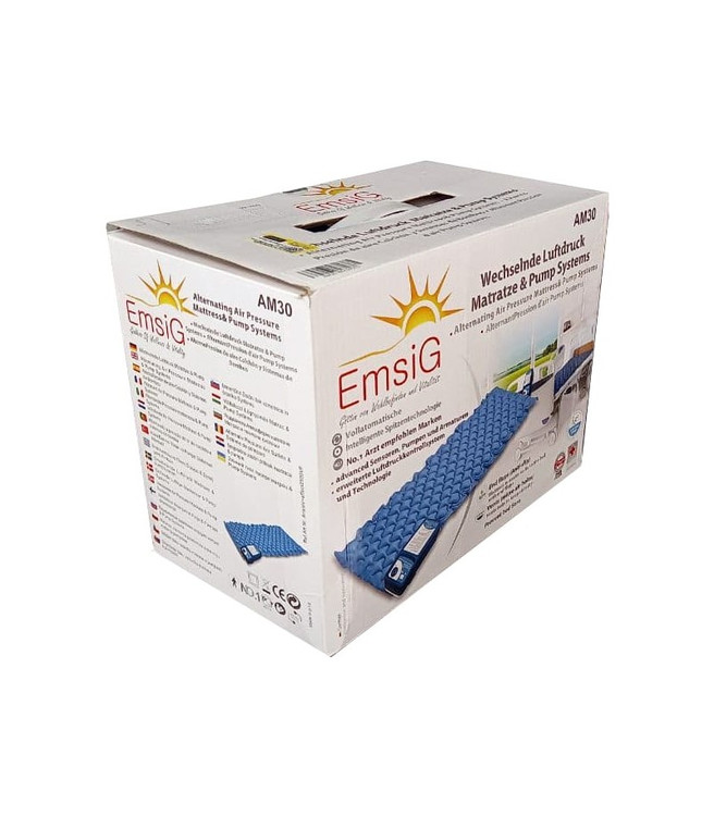 تشک مواج AM30 امسیگ با هدف جلوگیری از بروز زخم بستر توسط متخصصان کمپانی امسیگ EmsiG طراحی گردیده است . این تشک ضد حساسیت و بسیار کم مصرف است و با جریان هوا و توزیع فشار بدن در سطح گسترده با ۱۳۰ سلول تخم مرغی از ایجاد زخم بستر جلوگیری میکند. این تشک یکی از پر طرفدار ترین محصولات برای جلوگیری از بروز زخم بستر است که نوسط پزشک به بیماران توصیه میگردد . امسیگ این مجصول را با طراحی منحصر به فرد برای ارائه حدمات به سالمندان و معلوین عزیز ساخته است و به طور ویژه از آن حمایت مینماید .