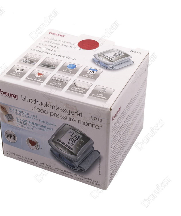 فشارسنج دیجیتالی بیورر Beurer BC16 محصول شرکت Beurer و ساخت کشور آلمان میباشد، این محصول بوسیله شرکت آرمین درمان وارد کشور و گارانتی شده است.